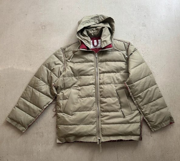 Okay, so what’s better: natural or synthetic insulation? Both are better than the other, to a certain extent. Both are worse than the other, depending on the circumstances. That’s another way of saying that what looks like an either-or question is actually, in logicians’ lingo, an inclusive disjunction: it’s possible for both things to be true at the same time. “Natural is good, synthetic is bad” doesn’t do the trick anymore. Natural is preferable, but not always unproblematic. Synthetic is cool, but often terrible. Down and Primaloft are extremely difficult to compare. Wool is cozy and biodegradable, but most of it is of unethical origin. Raso Gommato — Egyptian cotton coated with polyurethane — is technically brilliant, but disastrous for the planet and the health of workers in the supply chain. A fast fashion shirt made of hemp is likely to have a much higher environmental footprint than an ethical alternative involving recycled polyester. You’ll get the point.