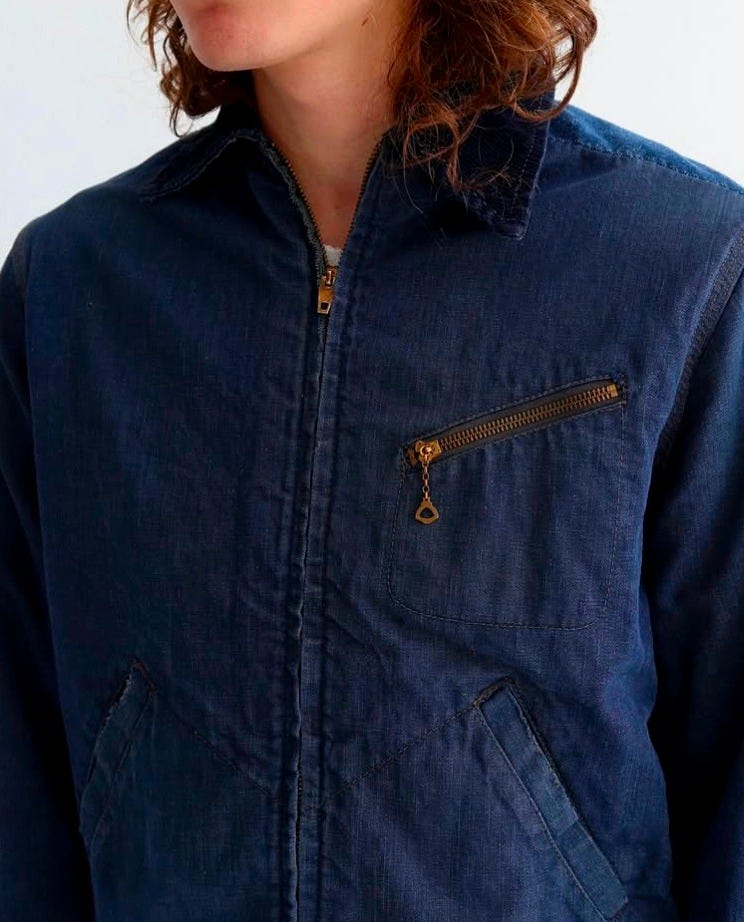 One item that really stuck with me was a 1940s Never Rip-Um work jacket that I had found and wore all the time. It had everything I love about vintage workwear — great fabric, simple construction, and thoughtful details — but after years of heavy wear it was starting to fall apart. It was always in the back of my mind to recreate that jacket and change a few details to make it feel a little more current.