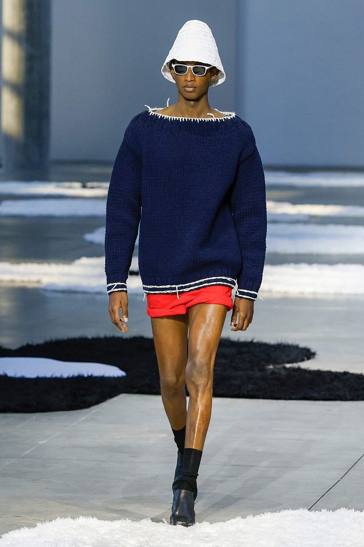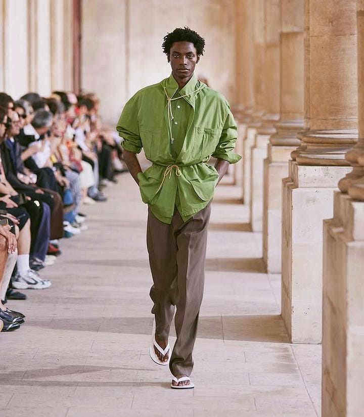 I’m back home from spending 3,5 days at Paris Fashion Week. “The clothes are hot, but the parties are even hotter,” wrote GQ. The weather, in fact, was the hottest of all — by far. A lot of what happened in Paris I didn’t see. Louis Vuitton’s star-studded show next to the Centre Pompidou, Auralee’s flip-flop frenzy, the complete absence of pants at both Prada and Rier, Jonathan Anderson’s breezy baroque for Dior, Camiel Fortgens’ debut calendar show. So, what did I see? I’m not entirely sure yet.