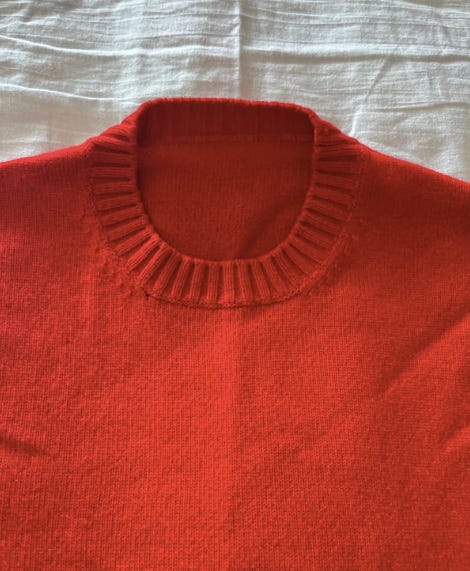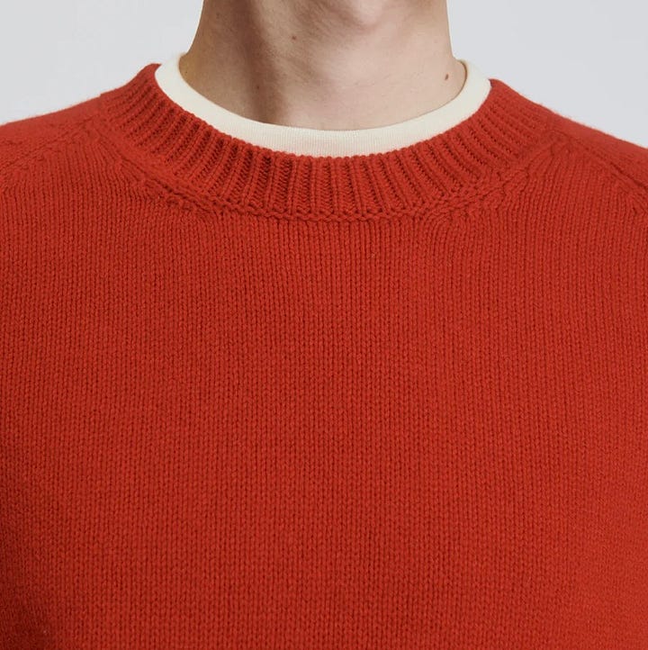 It allows for a less rational, more experimental approach to your wardrobe. It’s a virtue to think about the clothing you buy. But over-thinking it can be a vicious thing. Sometimes you just have to give it a try. I, for one, often wonder whether a poppy red crewneck could work for me. This And Daughter knit places a €475 abyss between me and sartorial experiment. A €25 Luciano Barbera piece — made in Italy from 100% cashmere — erects a make-do bridge allowing me to cross it.