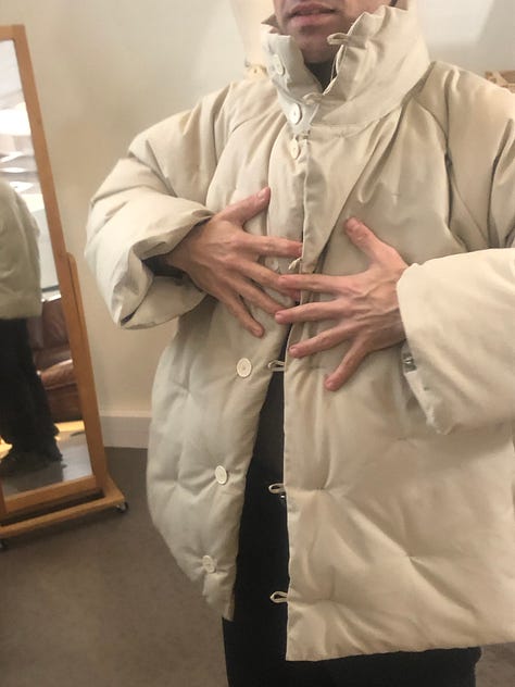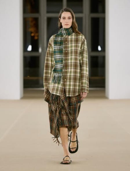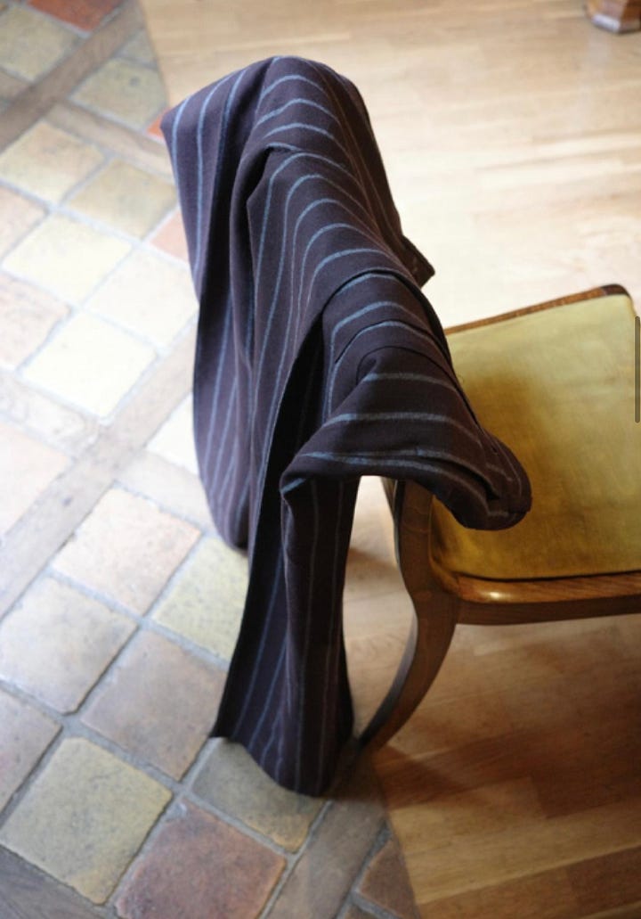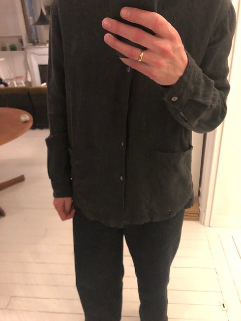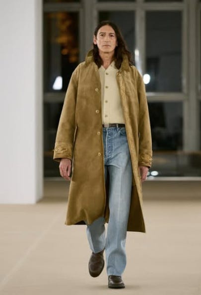 With CSiLLAG, he’s going all-in on informal tailoring and low-key luxury. The collection — presented in an antique dealer/collector’s home — is as small as it’s deeply considered: three or four pairs of trousers, about five shirts, and two tops. That’s not much, but then again it is. The fabrics are incredible, and every single piece makes you feel posh in the only right sense of that word: owning the ground you’re standing on. My favorite was a pair of blue/purple-ish wide-leg trousers, which Cole calls the ‘work pants’, made from linen and cotton. I took a picture, but it was completely blurry — my bad.