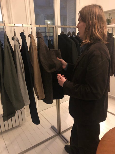Peter and I jumped on the subway, heading to north-east Paris to meet Oliver Warner and Romina Ferrari from London-based Conkers. Their AW26 collection is called ‘local’, vernacular for your favorite pub around the corner. It also captures much of what’s essential to what Conkers does: local sourcing in London and other parts of England, building relationships with their community, and having tea or a beer with the people they’re working with. “It’s my dream to open a pub one day,” Oliver told me. He should, and I’m sure it would become many people’s local.